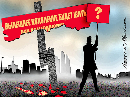 Землю — крестьянам, заводы — рабочим? Близко, но не то. Продвинемся чуть ближе в воспоминаниях отрезков исторического пути России… Посмотрите на обещания Никиты Хрущева: «Нынешнее поколение людей будет жить при коммунизме». Сделано оно было в конце октября 1961 года и подразумевало, что Советский Союз «превзойдет по производству продукции на душу населения наиболее мощную и богатую страну капитализма — США; значительно поднимутся материальное благосостояние и культурно-технический уровень трудящихся, всем будет обеспечен материальный достаток; все колхозы и совхозы превратятся в высокопроизводительные и высокодоходные хозяйства; в основном будут удовлетворены потребности советских людей в благоустроенных жилищах». Завершиться же основная фаза строительства коммунизма должна была к 1981 году.