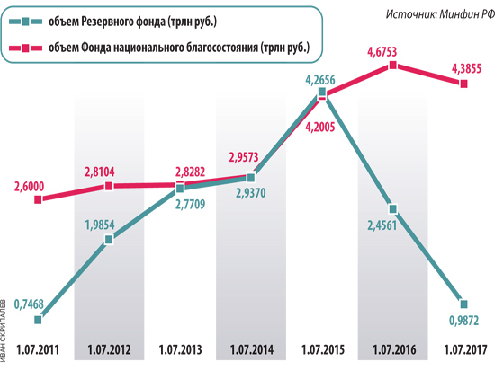 Минфин многократно предупреждал о приближающихся сроках исчерпания Резервного фонда. Но объединение суверенных фондов (а раз объединение — значит, в Резервном фонде еще что-то остается) по сути означает, что первым закончится Фонд национального благосостояния (ФНБ). Потому что объединение фондов — это отказ от целей, которые ставились перед ним. Именно так еще год назад формулировал вопрос Антон Силуанов: «Если закончатся средства Резервного фонда, то ФНБ — точно такой же резервный фонд».