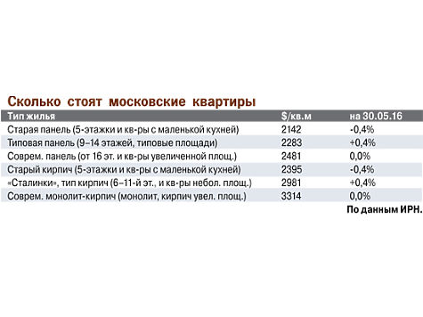 По итогам мая 2016 г. средняя цена метра на рынке новостроек Москвы от ТТК до МКАД выросла на 1% и составила 202 тыс. руб. «В первую очередь этому способствовали активные продажи жилья в ряде проектов экономкласса и, следовательно, снижение доли недорогих квартир на рынке столичных новостроек. Кроме того, в мае вышло несколько проектов эконом- и комфорт-класса, которые благодаря своему расположению — в престижном ЗАО или недалеко от центра — предлагаются дороже сложившегося среднего уровня цен в этих сегментах», — пояснила руководитель «ИРН-Консалтинг» Татьяна Калюжнова.
