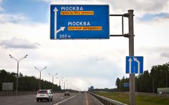 Указатель платной дороги при подъезде к Москве