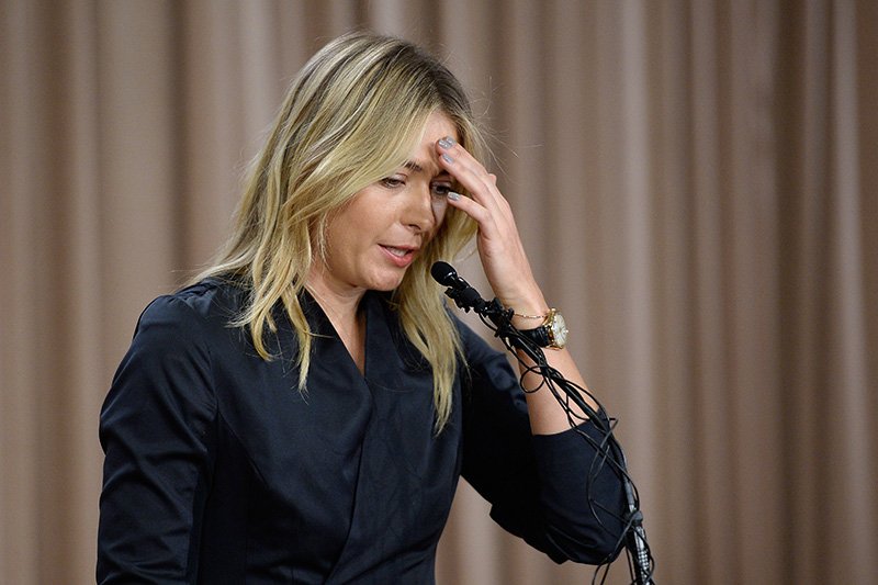 Двухлетнюю дисквалификацию Шарапова получила за употребление запрещенного препарата мельдония. 7 марта 2016 года теннисистка объявила, что 26 января во время турнира Australian Open сдала положительный допинг. Ответственность за применение допинга Шарапова взяла на себя, сказав, что не заметила письмо от Всемирной антидопинговой ассоциации, в котором говорилось, что с 2016 года мельдоний становится запрещенным препаратом. На фото: Шарапова во время пресс-конференции 7 марта