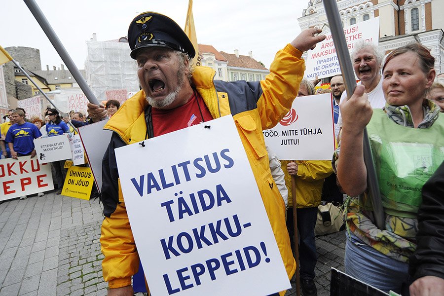 Профсоюзы Эстонии на митинге против пособий по безработице
