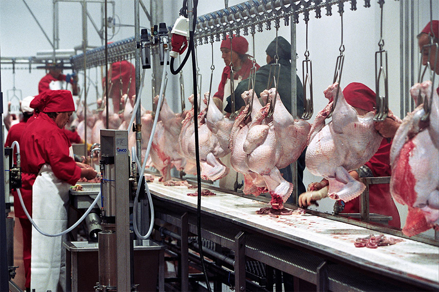 Обработка тушек индеек в цехе глубокой переработки Башкирского птицеводческого комплекса им. Гафури