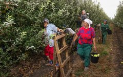 Сбор яблок на территории сельскохозяйственного предприятия