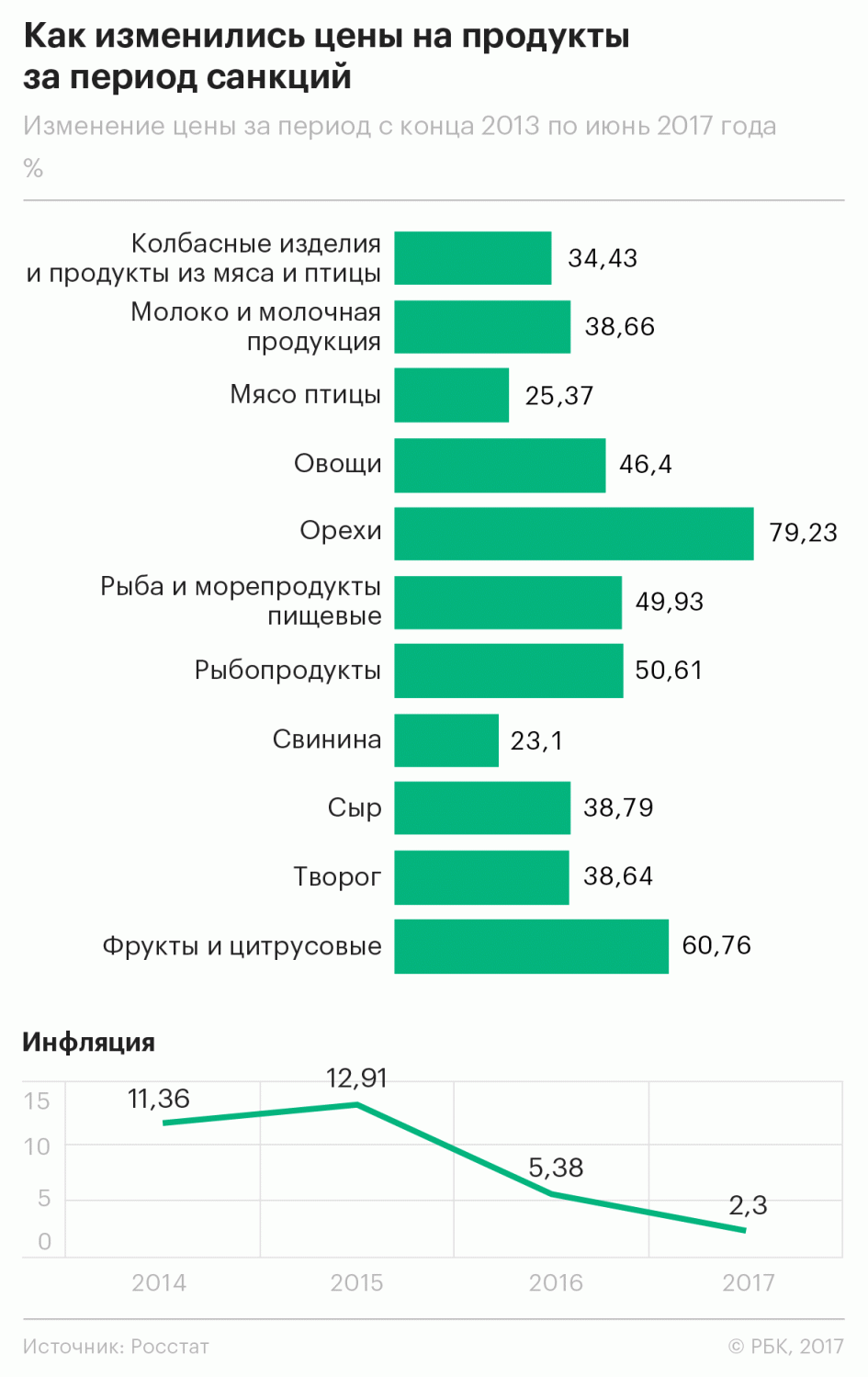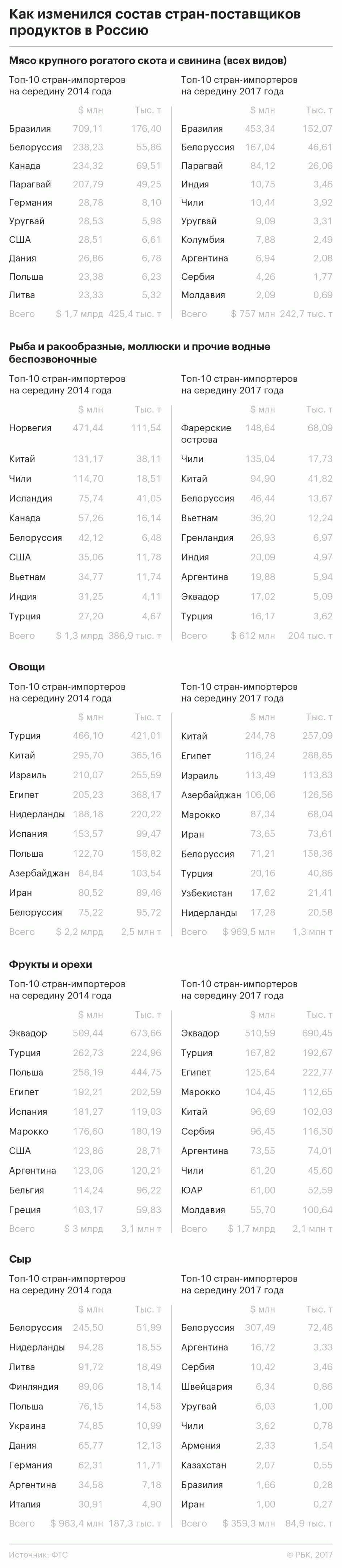 «Продовольственные санкции оказали явное влияние на объем ввоза продовольствия в Россию из Евросоюза, который в 2016 году составил €5,6 млрд против €11,8 млрд в 2013 году. Однако общий аграрный экспорт из стран Евросоюза в течение этого периода рос, составив в 2016 году рекордные €131 млрд», — говорится в материалах Европейской комиссии.