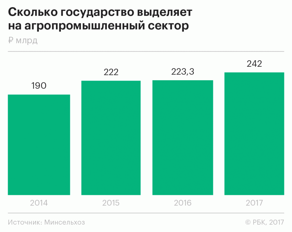 При этом, по мнению главы министерства, чтобы «сохранить полученный импульс к развитию», важно в дальнейшем не снижать объемов господдержки. «Это главный стимул для инвестиций в аграрный сектор, и пока правительство планирует сохранить в следующем году достигнутый уровень поддержки на уровне 242 млрд руб., — отмечает Ткачев. — Во-вторых, важно поддерживать стабильный курс рубля (на уровне не ниже 60 руб. за доллар) и не допускать его укрепления, чтобы не свести на нет все усилия государства по реализации программы импортозамещения». По данным ЦБ, курс доллара на 4 августа — 60,75 руб.