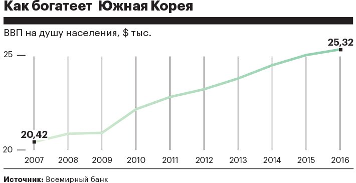 Конечно, оперативные успехи ориентированной на экспорт экономики Южной Кореи — в первую очередь заслуга мировой экономики, которая в прошлом году выросла на 3,1%, а в этом, как ожидает Международный валютный фонд, наберет еще 3,4%. Но долгосрочный расцвет страны имеет более фундаментальные причины, которые оказываются сильнее, чем коррупция.